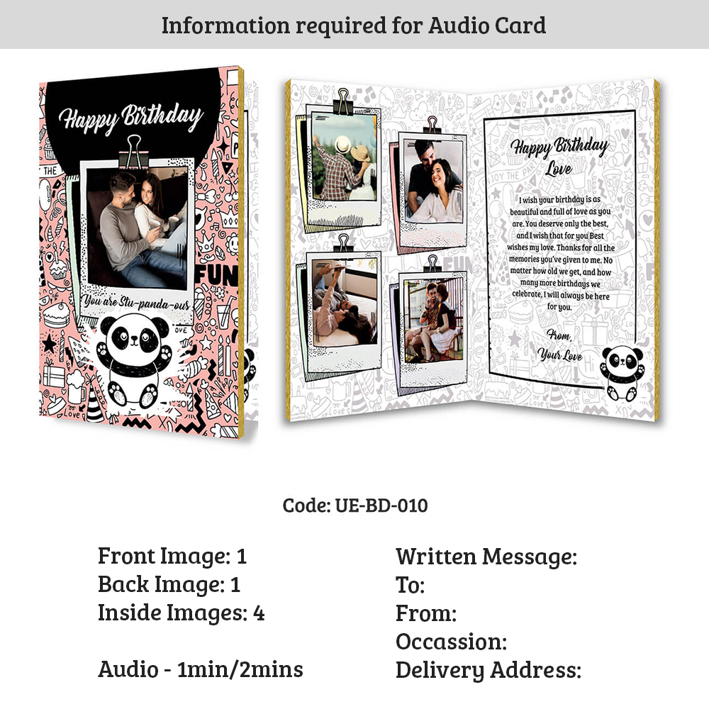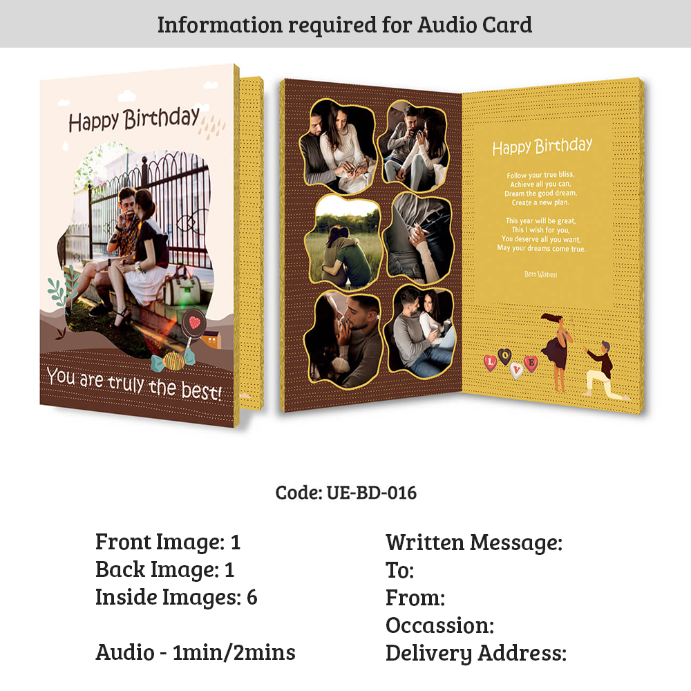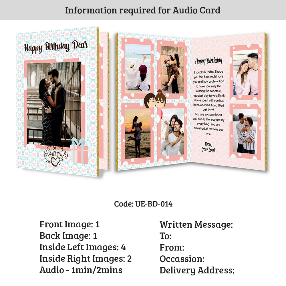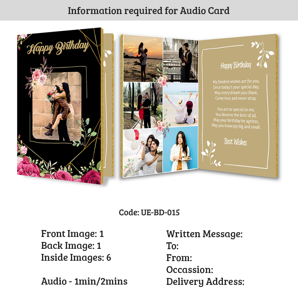 Its a customized card with pictures and audio messages. Chose your design & gift this super innovative unique card to your loved ones.