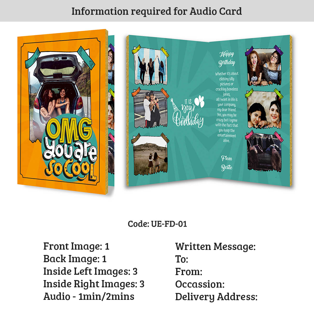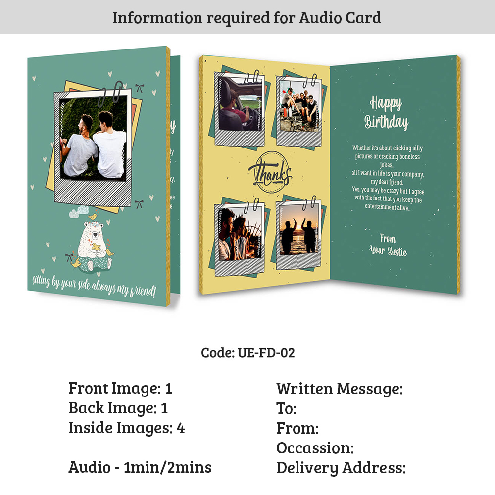 Its a customized card with pictures and audio messages. Chose your design & gift this super innovative unique card to your loved ones.