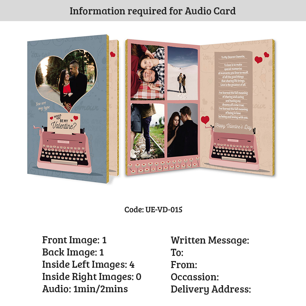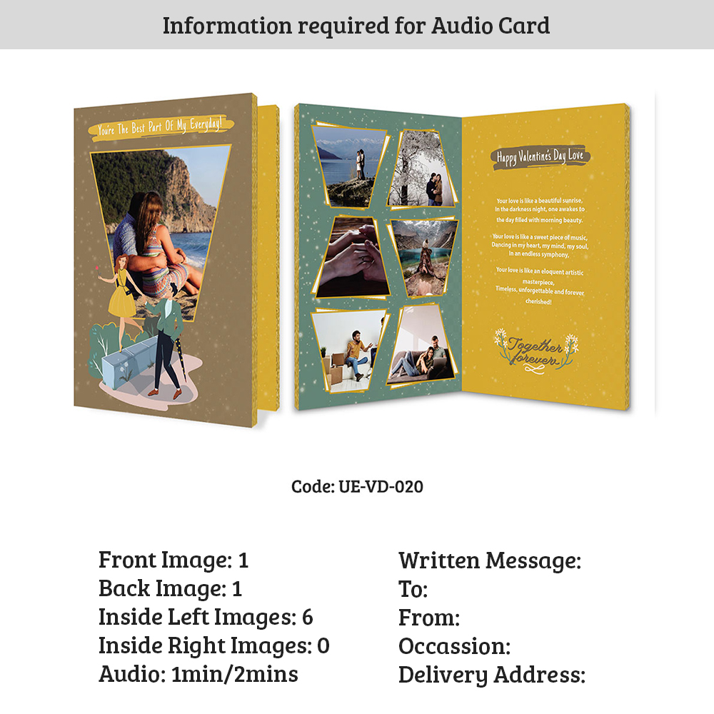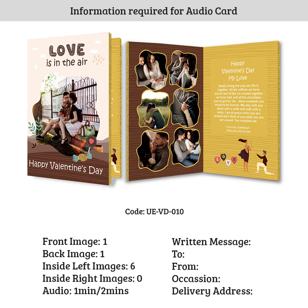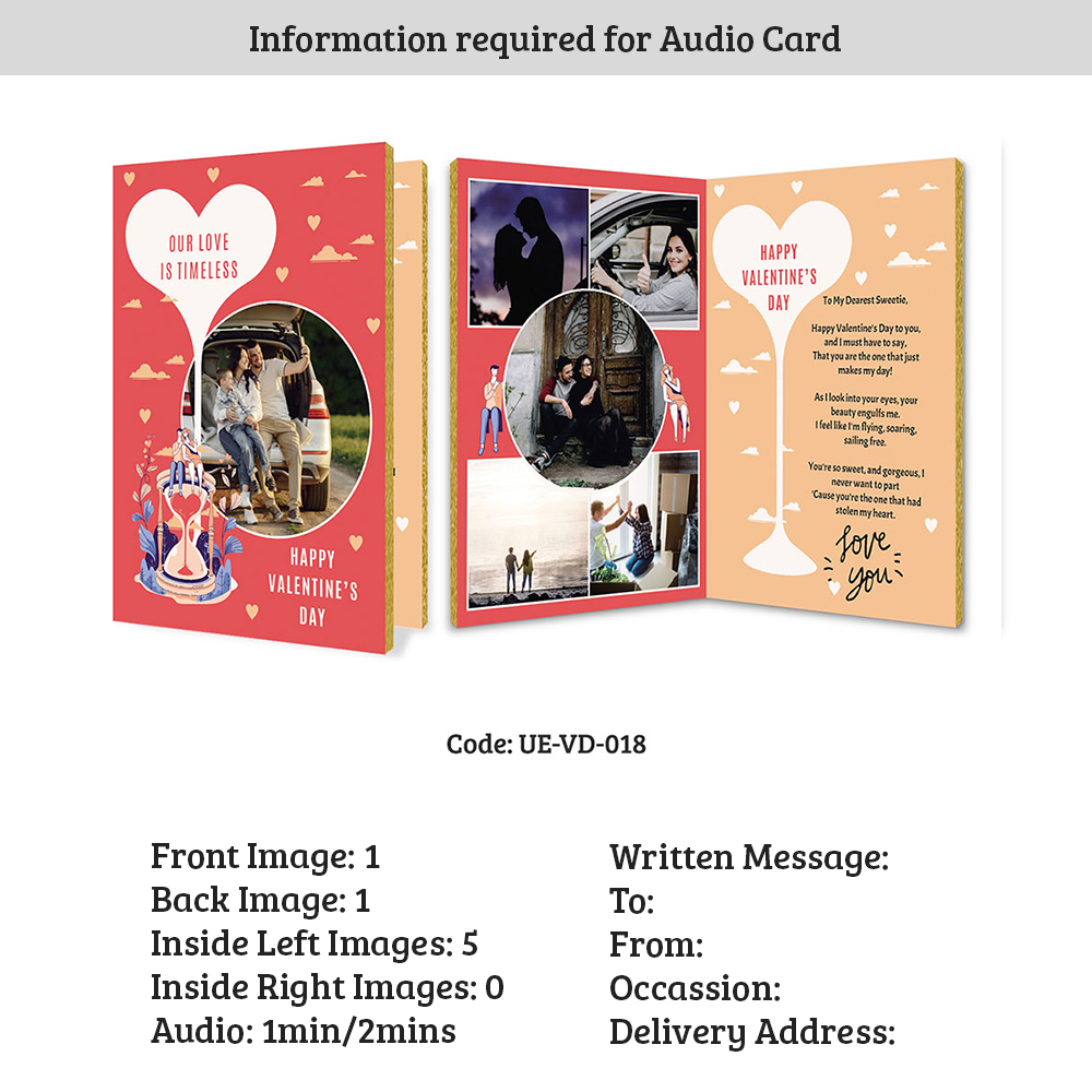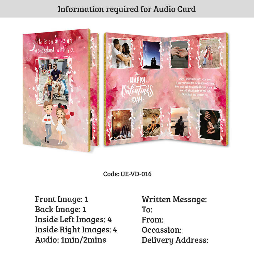 Its a customized card with pictures and audio messages. Chose your design & gift this super innovative unique card to your loved ones.
